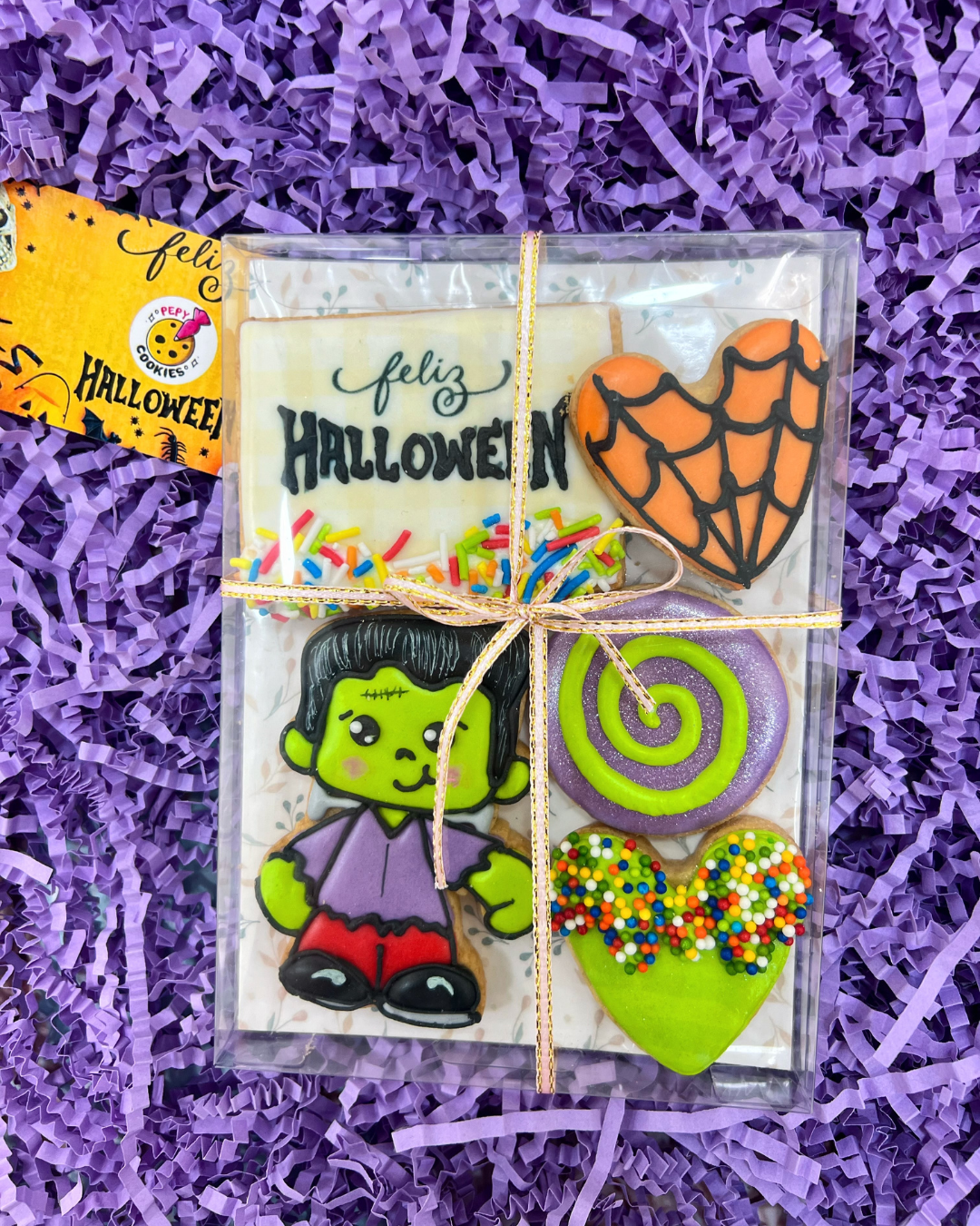 Nuestra box de 5 galletas es perfecta para regalar, compartir o disfrutar en familia. Cada galleta está cuidadosamente decorada con diseños temáticos de Halloween, elaboradas a mano con nuestro delicioso glaseado artesanal.